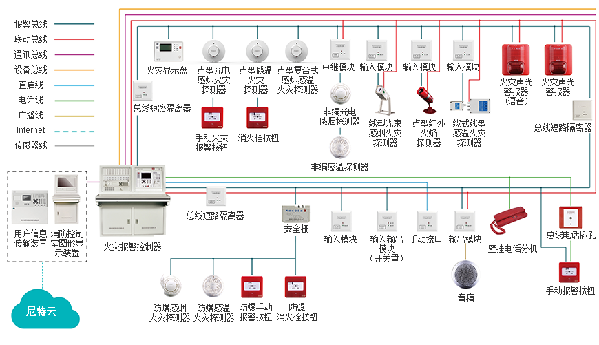 尼特火災(zāi)自動報警系統(tǒng)分為“二線制”解決方案和“四線制”解決方案