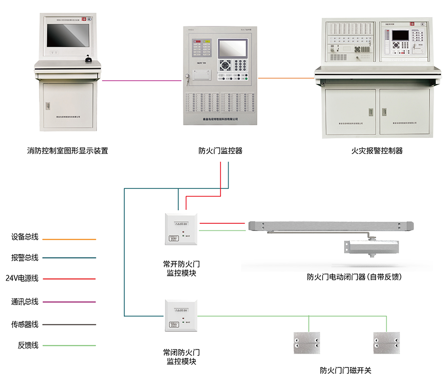 尼特防火門監(jiān)控系統(tǒng)分為“二線制”解決方案和“四線制”解決方案,系統(tǒng)符合國(guó)家標(biāo)準(zhǔn) GB29364-2012《防火門監(jiān)控器》,采用 FT-BUS 全數(shù)字總線技術(shù),主機(jī)自帶 63 點(diǎn)總線 控制盤;單機(jī)容量 2000 點(diǎn),可通過(guò) CAN 總線實(shí)現(xiàn) 200 臺(tái)主機(jī)聯(lián)網(wǎng);門磁開關(guān)和電動(dòng)閉門器采用兩總線工作方式。 系統(tǒng)可通過(guò) RS485 接口與消防控制室圖形顯示裝置連接,具有高可靠性和廣泛的工程適應(yīng)性。