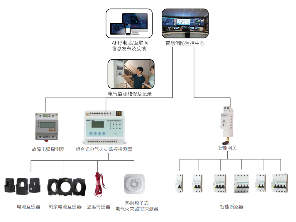 尼特智慧用電安全監(jiān)控系統(tǒng)采用檢測電氣線路剩余電流、電壓、電量、故障電弧、線路的溫度的手段進(jìn)行電氣火災(zāi)監(jiān)控。實(shí)時(shí)接收聯(lián)網(wǎng)單位監(jiān)測線路中的剩余電流、電壓、電量、故障電弧、溫度變化等信息,對(duì)數(shù)據(jù)進(jìn)行匯總、分析、自動(dòng)繪成動(dòng)態(tài)曲線。用電安全監(jiān)控系統(tǒng)安裝在配電室和配電箱處,實(shí)時(shí)檢測供電線路干線、次干線的剩余電流和溫度,如超過剩余電流或溫度的報(bào)警值立即發(fā)出報(bào)警信息并準(zhǔn)確顯示故障點(diǎn)和故障原因,通知相關(guān)人員及時(shí)排查隱患,把電氣火災(zāi)事故消滅在萌芽狀態(tài)。