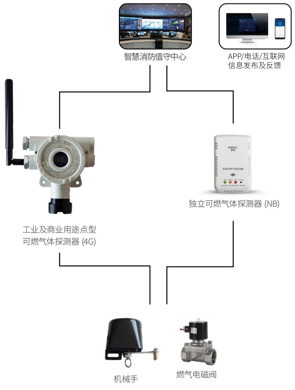 以獨(dú)立可燃?xì)怏w探測(cè)器作為監(jiān)測(cè)終端,運(yùn)用物聯(lián)網(wǎng)、多維地理信息、大數(shù)據(jù)等技術(shù)手段感知、集成分析場(chǎng)景內(nèi)燃?xì)膺\(yùn)行系統(tǒng)的各項(xiàng)關(guān)鍵信息,并將監(jiān)測(cè)信息實(shí)時(shí)上傳至尼特云智慧消防管理平臺(tái),實(shí)現(xiàn)“不間斷監(jiān)測(cè)、燃?xì)猱惓J褂妙A(yù)警、秒級(jí)現(xiàn)場(chǎng)預(yù)警、多智能端協(xié)同接收并處理預(yù)警信息、智能切斷燃起閥門、消防應(yīng)急急救部門秒級(jí)聯(lián)動(dòng)”等功能,通過對(duì)燃?xì)夤芫W(wǎng)各個(gè)關(guān)鍵業(yè)務(wù)環(huán)節(jié)的信息化管理,實(shí)現(xiàn)燃?xì)獍踩芸氐闹悄芑途?xì)化。