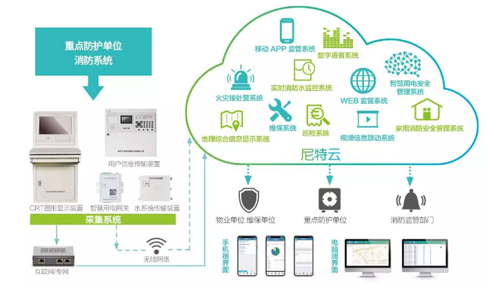 為強化房企及公共建筑消防監(jiān)管力度、提升社會整體消防安全水平,尼特自主研發(fā)的“尼特云”智慧消防平臺,可為品牌房企實現(xiàn)跨城市、跨區(qū)域、跨品牌的遠程監(jiān)管功能,通過獨立定制服務(wù)方案,大大提升品牌房企自身的消防管理水平。目前“尼特云”已經(jīng)在碧桂園集團、秦皇島市第一醫(yī)院等重要項目中應(yīng)用。平臺包含火災(zāi)預(yù)警、消防水監(jiān)管、用電安全監(jiān)管、遠程巡檢、遠程維保、地理信息聯(lián)動、人員監(jiān)管、火災(zāi)研判、應(yīng)急預(yù)案設(shè)置、大數(shù)據(jù)分析等模塊,從信息源頭的采集到后期結(jié)果的處理與維護,讓品牌房企的消防管理工作更全面、更專業(yè)!