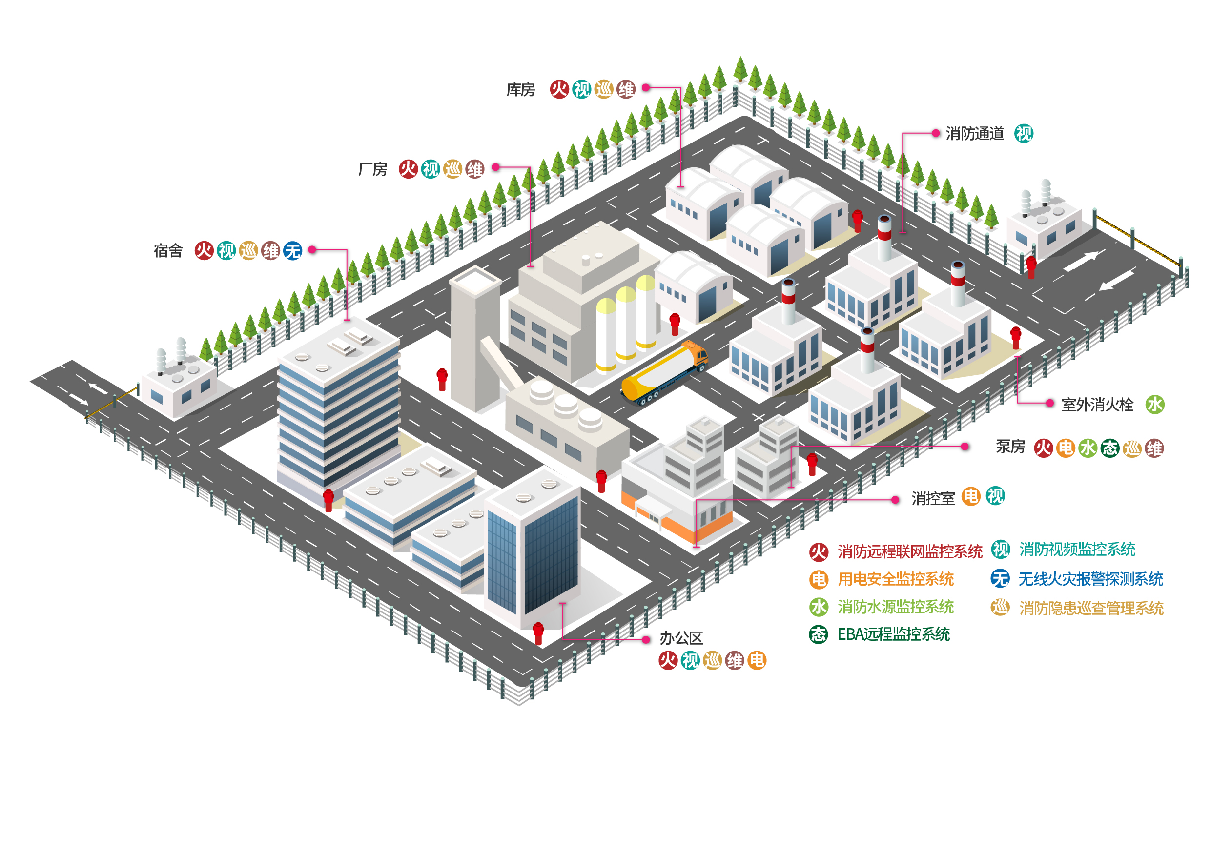 針對園區(qū)、廠區(qū)、廠房等場景,尼特制定了園區(qū)智慧消防解決方案,通過安裝用戶傳輸裝置、智慧用電、消防水源監(jiān)控、設(shè)備狀態(tài)監(jiān)控器、視頻監(jiān)控等智能化設(shè)備,實現(xiàn)安全隱患的提前發(fā)現(xiàn)、干預(yù)、處理,極大提高了園區(qū)消防工作效率,降低了人員成本,全面促進了信息化與園區(qū)消防業(yè)務(wù)工作的深度融合。