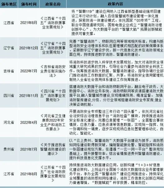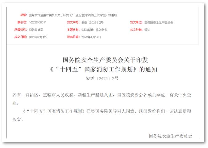 國(guó)務(wù)院安全生產(chǎn)委員會(huì)發(fā)布了關(guān)于印發(fā)《“十四五”國(guó)家安全生產(chǎn)規(guī)劃》的通知,關(guān)于消防行業(yè)的發(fā)展其中提及到:推動(dòng)建立基層消防網(wǎng)格化信息管理平臺(tái),建設(shè)消防物聯(lián)網(wǎng)監(jiān)控系統(tǒng)和城市消防大數(shù)據(jù)庫(kù)。