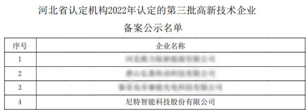 成立以來,尼特多次通過高新技術(shù)企業(yè)認(rèn)定。2022年再次獲得高新技術(shù)企業(yè)認(rèn)證,不僅是對尼特在技術(shù)創(chuàng)新、產(chǎn)品研發(fā)方面取得的成果的高度認(rèn)可,也充分說明了尼特在自主知識產(chǎn)權(quán)、技術(shù)創(chuàng)新研發(fā)的發(fā)展水平,對進(jìn)一步推動技術(shù)創(chuàng)新工作,提升自主研發(fā)管理能力,加速技術(shù)成果轉(zhuǎn)化,提高核心競爭力和可持續(xù)發(fā)展能力具有重要意義,為進(jìn)一步貫徹尼特“創(chuàng)新驅(qū)動發(fā)展”發(fā)展戰(zhàn)略奠定堅實基礎(chǔ)。