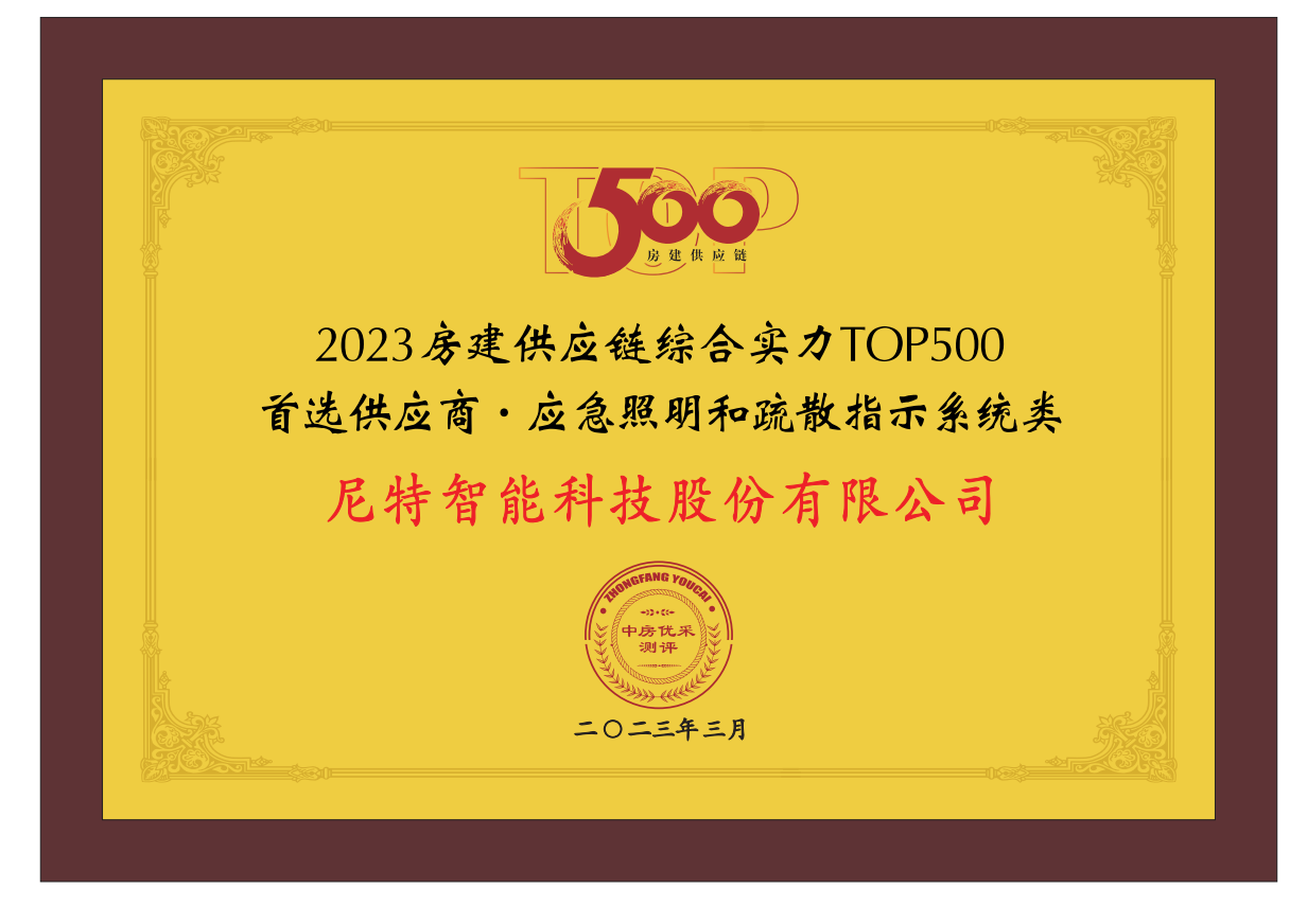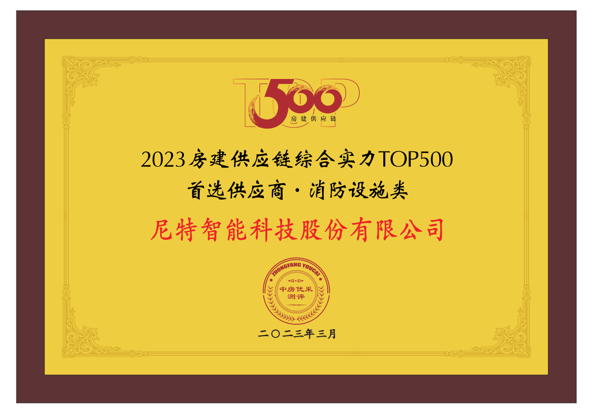 3月23日,以“新征程 再出發(fā)”為主題的“2023 中國房地產(chǎn) TOP500 測評成果發(fā)布會暨房地產(chǎn)發(fā)展高峰論壇”在北京隆重召開。尼特以強大的品牌實力和優(yōu)秀的行業(yè)表現(xiàn),連續(xù)六年榮登消防設(shè)施類500強首選供應(yīng)商品牌榜單TOP3,應(yīng)急疏散類連續(xù)四年蟬聯(lián)榜首!