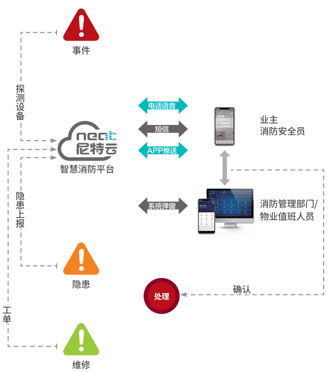 針對(duì)家庭消防安全隱患,尼特打造了家庭智慧消防解決方案,通過(guò)安裝家用獨(dú)立式感煙探測(cè)器、家用獨(dú)立可燃?xì)怏w探測(cè)器、家用智能斷路器等前段感知設(shè)備,對(duì)家庭內(nèi)的廚房、客廳、臥室等房間進(jìn)行實(shí)時(shí)火災(zāi)監(jiān)測(cè),借助物聯(lián)網(wǎng)信號(hào)將火警信息上傳到物業(yè)監(jiān)管平臺(tái)或用戶的小尼平安手機(jī)APP上,第一時(shí)間進(jìn)行現(xiàn)場(chǎng)復(fù)核,壓縮火災(zāi)處置時(shí)間,做出有效應(yīng)對(duì),避免出現(xiàn)小火引發(fā)大災(zāi),進(jìn)一步提高家庭用戶火災(zāi)預(yù)警、防控能力。