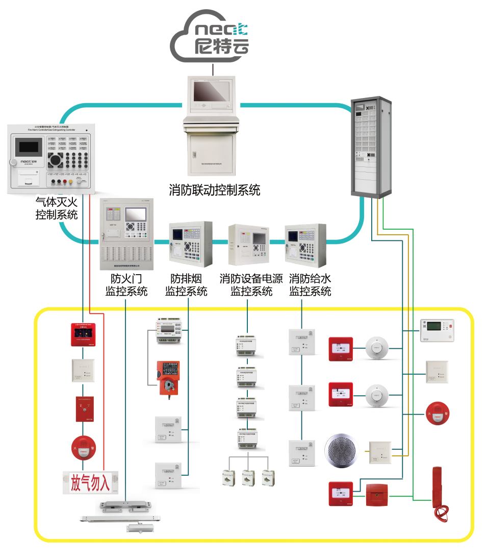 由于烏海機(jī)場(chǎng)各樓距離相對(duì)較遠(yuǎn),消防設(shè)施數(shù)量多、分布廣、種類繁雜、系統(tǒng)龐大,為消防安全系統(tǒng)改造工作帶來(lái)極大挑戰(zhàn),要求作為消防設(shè)施核心的火災(zāi)報(bào)警控制系統(tǒng)應(yīng)具備聯(lián)動(dòng)功能強(qiáng)、硬件容量大、報(bào)警控制快速準(zhǔn)確、系統(tǒng)高穩(wěn)定可靠等特點(diǎn)。在經(jīng)過(guò)重重篩選與考量后,烏海機(jī)場(chǎng)對(duì)尼特高度集成的消防電氣系統(tǒng)解決方案給予了極高認(rèn)可,最終確定了尼特作為此次消防安全系統(tǒng)改造工程供應(yīng)商。