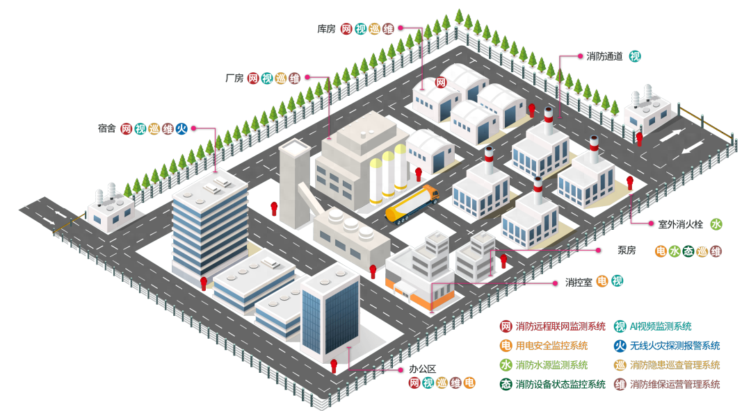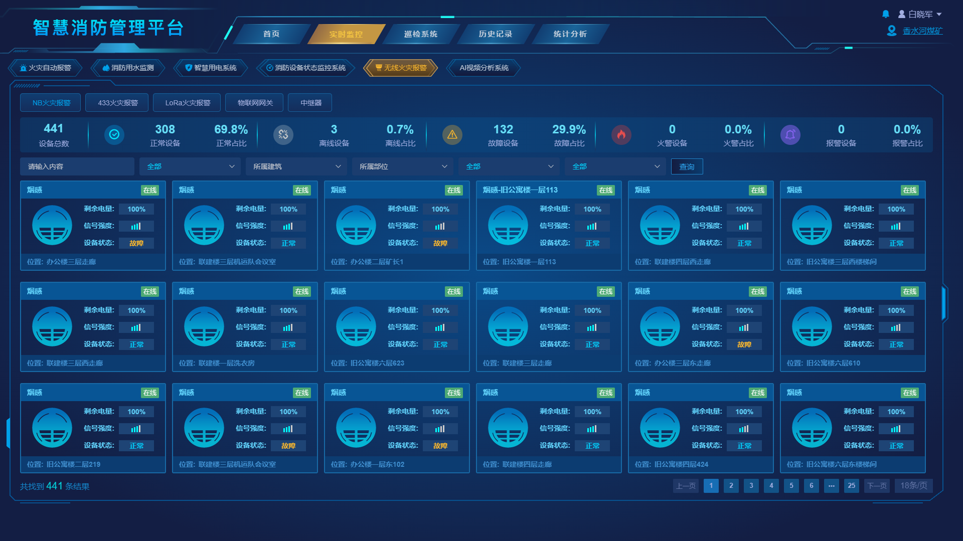結(jié)合4G/5G、NB、LORA等現(xiàn)代通訊信息技術(shù),尼特針對(duì)香水河煤礦的實(shí)際情況,在原有消防安全管理的基礎(chǔ)上建設(shè)各類(lèi)物聯(lián)感知傳感設(shè)備,依靠用戶(hù)信息傳輸裝置、獨(dú)立式感煙探測(cè)器、感溫探測(cè)器、可燃?xì)怏w探測(cè)器、消防管網(wǎng)壓力探測(cè)器等前端感知設(shè)備進(jìn)行數(shù)據(jù)采集,通過(guò)后端尼特云智慧消防管理平臺(tái)統(tǒng)一聯(lián)網(wǎng)應(yīng)用,解決設(shè)備孤島問(wèn)題,切實(shí)將安全生產(chǎn)責(zé)任落實(shí)到人,實(shí)現(xiàn)消防安全在線化、可視化智能化的管理,提高香水河煤礦的消防安全管控能力、消防隱患發(fā)現(xiàn)以及處置能力、應(yīng)對(duì)火災(zāi)突發(fā)事件的處置效率。