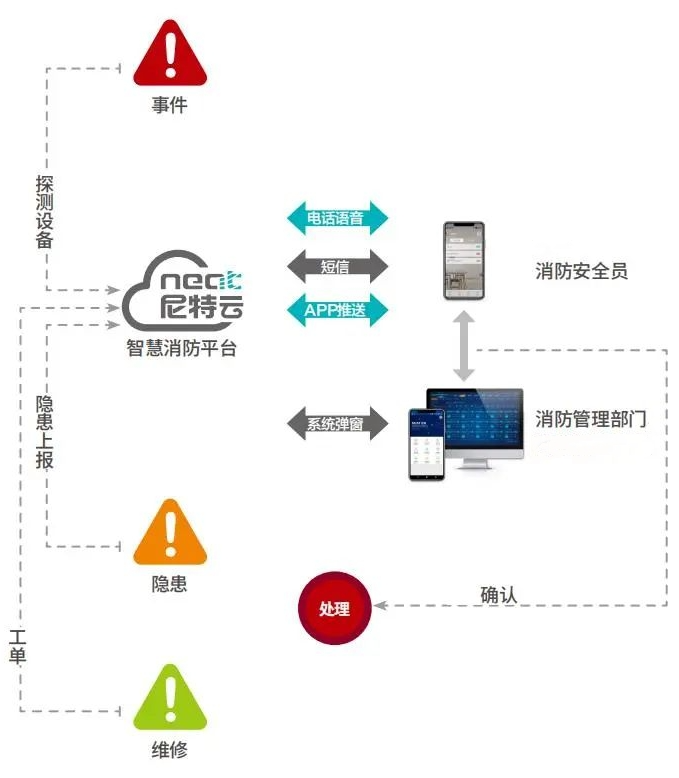 消防安全作為公共安全的重要組成部分,物聯(lián)網(wǎng)、大數(shù)據(jù)、云計(jì)算等新興技術(shù)正不斷推動(dòng)著消防安全系統(tǒng)智能化升級(jí)。尼特智能于2016年立項(xiàng)智慧消防技術(shù)研究,依托自主研發(fā)的尼特云智慧消防管理平臺(tái),打造了全方位、場(chǎng)景化智慧消防解決方案,實(shí)現(xiàn)了消防安全事項(xiàng)“上報(bào)-處置-反饋-核查”的全流程管理模式,為消防監(jiān)督提供重要的信息支持。
