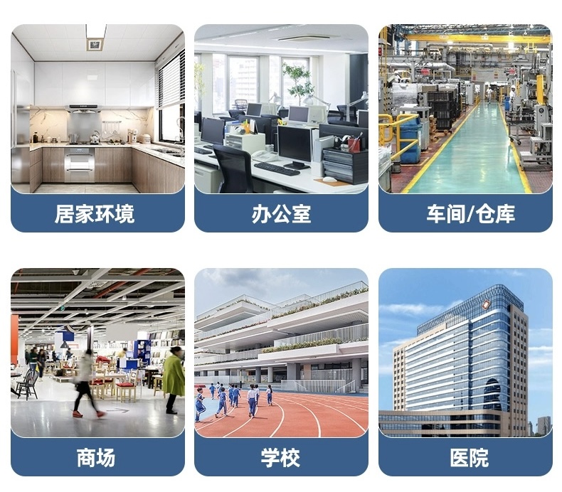 除“三小”場所外,可廣泛應用于家庭住宅、工業(yè)廠房、寫字樓、倉庫、商場、賓館、圖書館、教學樓、銀行等密集型場所。