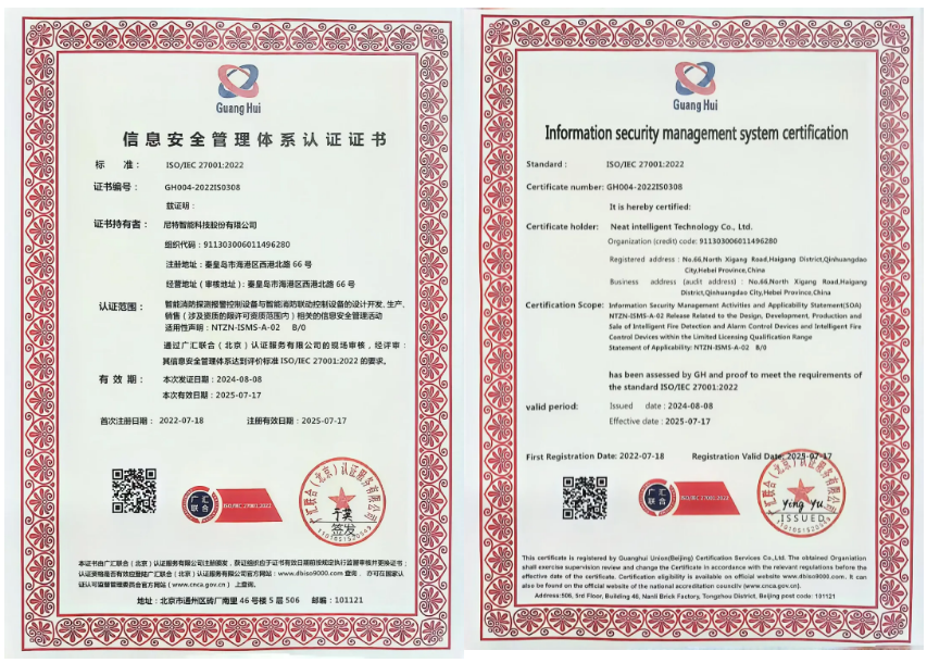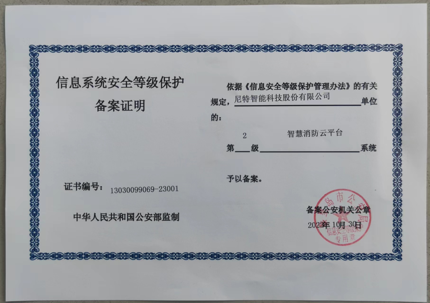 作為國內(nèi)較早從事物聯(lián)網(wǎng)消防安全系統(tǒng)研究的企業(yè),尼特智能以先進(jìn)的加密技術(shù)為基礎(chǔ),以堅(jiān)實(shí)的信息安全防線為保障,結(jié)合自主研發(fā)的尼特云智慧消防管理平臺(tái),在保護(hù)用戶隱私的同時(shí),充分挖掘和利用數(shù)據(jù)價(jià)值,從信息加密、權(quán)限管理再到匿名化處理,為消防預(yù)警提供更加精準(zhǔn)、更加安全、更具隱私保護(hù)的支持,憑借在消防信息安全管理中的深刻實(shí)踐與穩(wěn)定表現(xiàn),通過了ISO/IEC27001:2022信息安全管理體系認(rèn)證,標(biāo)志著公司在信息安全和隱私保護(hù)領(lǐng)域的努力得到了權(quán)威認(rèn)可,具備為客戶提供安全、可靠服務(wù)的實(shí)力。