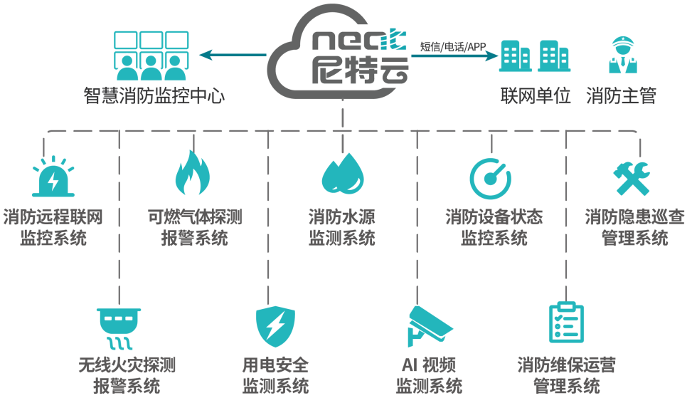 在《意見》中明確指出,鄉(xiāng)鎮(zhèn)(街道)和村(社區(qū))應(yīng)在相關(guān)部門指導(dǎo)下建立風(fēng)險隱患“一張圖”,暢通預(yù)警信息發(fā)布和傳播渠道。消防安全風(fēng)險隱患是生產(chǎn)生活中必須要注意的方面,也是提升基層應(yīng)急管理能力的重要一環(huán)。作為國內(nèi)較早從事物聯(lián)網(wǎng)消防系統(tǒng)研究的企業(yè),尼特智能歷經(jīng)多年的市場探索和經(jīng)驗(yàn)總結(jié),綜合運(yùn)用大數(shù)據(jù)、云計(jì)算、無線傳感等技術(shù),搭建了一套安全、可靠的智慧消防解決方案,將“人防、物防、技防 ”三結(jié)合應(yīng)用于消防管理和監(jiān)督中,實(shí)現(xiàn)消防管理工作智能化、可視化、痕跡化,切實(shí)滿足《意見》中關(guān)于進(jìn)一步推動推動公共安全治理模式向事前預(yù)防轉(zhuǎn)型的工作內(nèi)容。