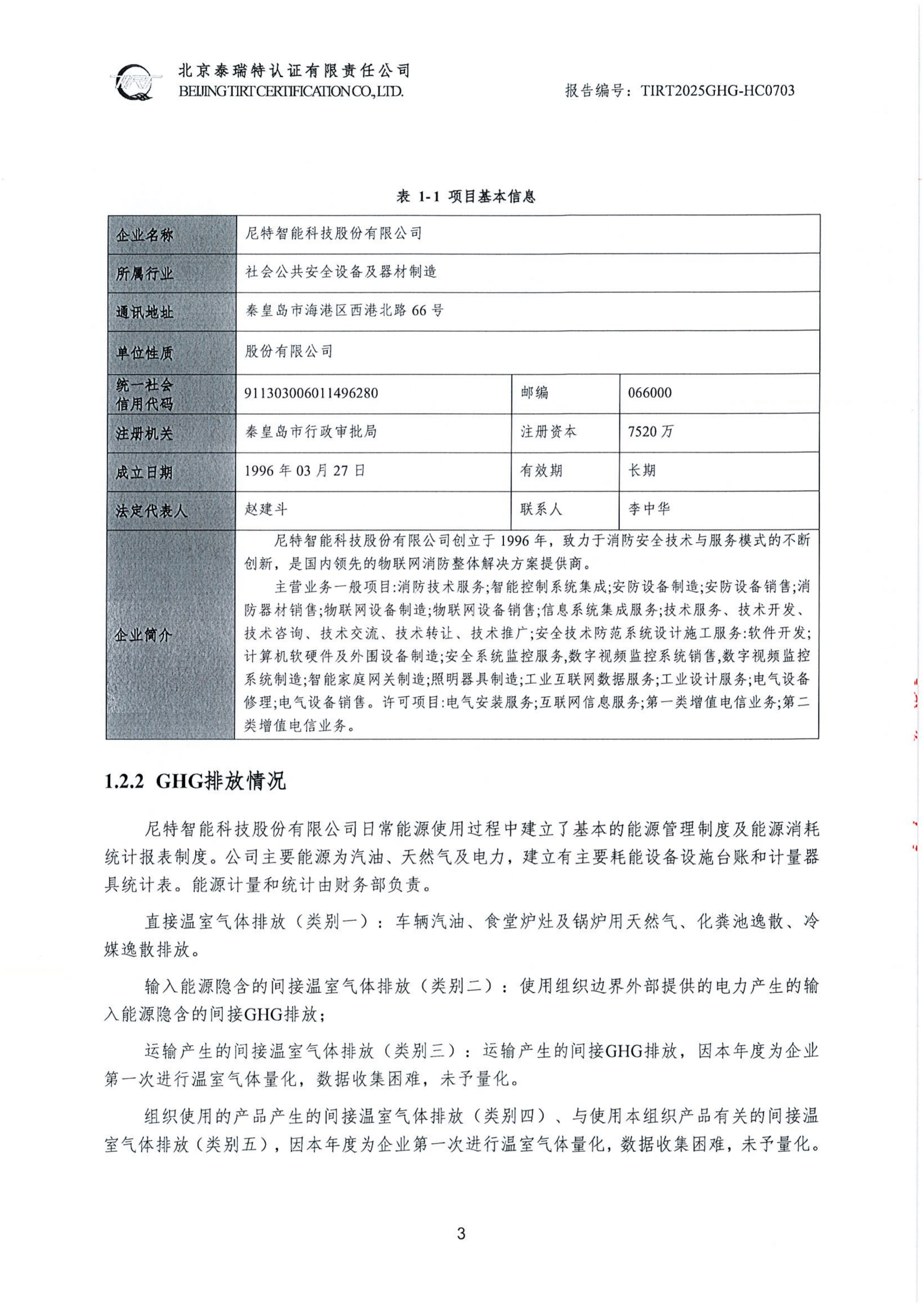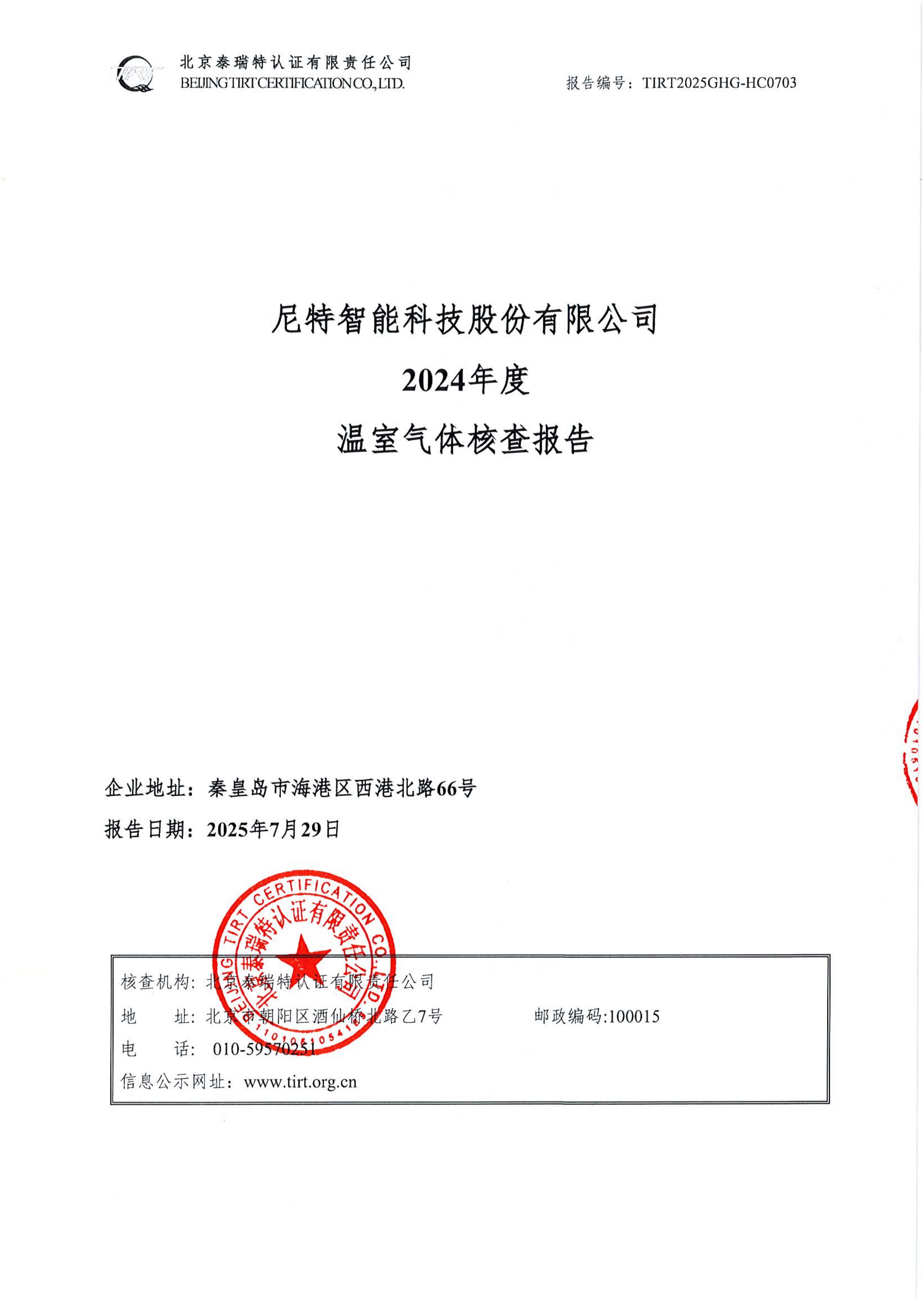 尼特智能科技股份有限公司溫室氣體核查報(bào)告