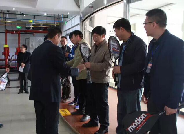 尼特信息科技有限公司副總經(jīng)理林永強(qiáng)、尼特智能科技有限公司總經(jīng)理張新忠為籃球友誼賽參賽員工頒獎(jiǎng)。
