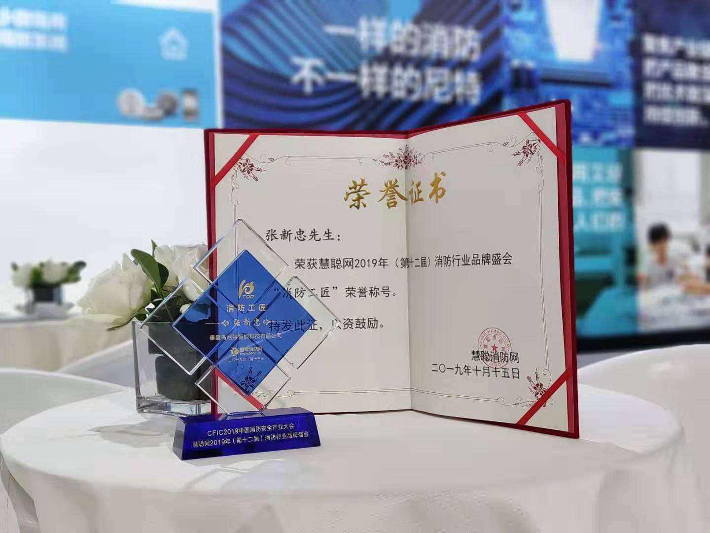 2019年10月15日,由中國消防協(xié)會、石化聯(lián)合會阻燃專委會、中國建筑學(xué)會指導(dǎo),慧聰消防網(wǎng)主辦的“2019(第十二屆)中國消防行業(yè)品牌盛會”上,尼特常務(wù)副總經(jīng)理張新忠先生憑借對消防行業(yè)的專業(yè)理解和卓越貢獻(xiàn),獲得了 2019年“消防工匠”榮譽稱號。
