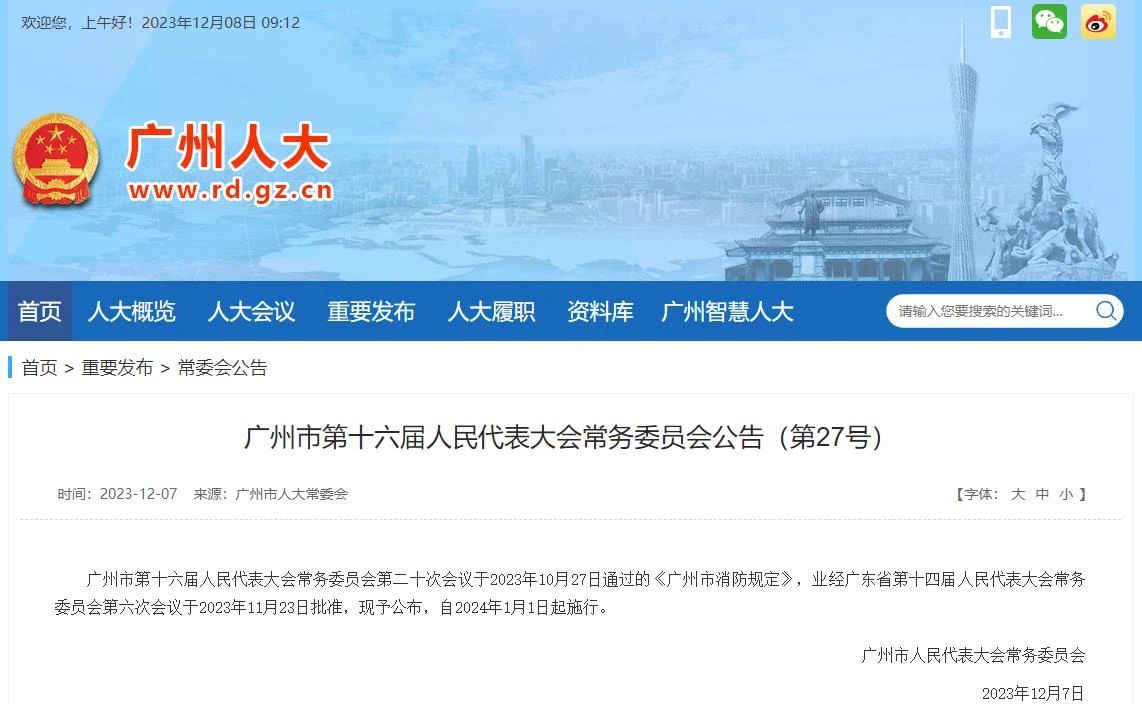 廣東省第十四屆人民代表大會(huì)常務(wù)委員會(huì)第六次會(huì)議審查了廣州市人民代表大會(huì)常務(wù)委員會(huì)報(bào)請(qǐng)批準(zhǔn)的《廣州市消防規(guī)定》,該規(guī)定與...
