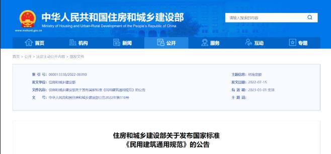 現(xiàn)批準(zhǔn)《民用建筑通用規(guī)范》為國家標(biāo)準(zhǔn),編號為GB 55031-2022,自2023年3月1日起實(shí)施。本規(guī)范為強(qiáng)制性工程建設(shè)規(guī)范,全部條文必須嚴(yán)格執(zhí)行?,F(xiàn)行工程建設(shè)標(biāo)準(zhǔn)中有關(guān)規(guī)定...