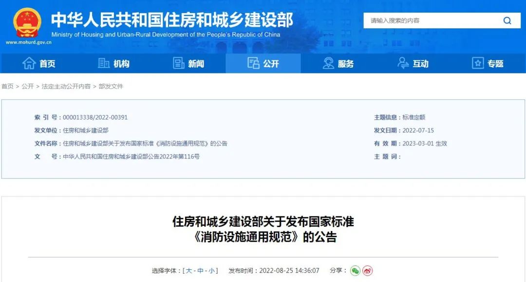 現(xiàn)批準《消防設施通用規(guī)范》為國家標準,編號為GB 55036-2023,自2023年3月1日起實施。本規(guī)范為強制性工程建設規(guī)范,全部條文必須嚴格執(zhí)...