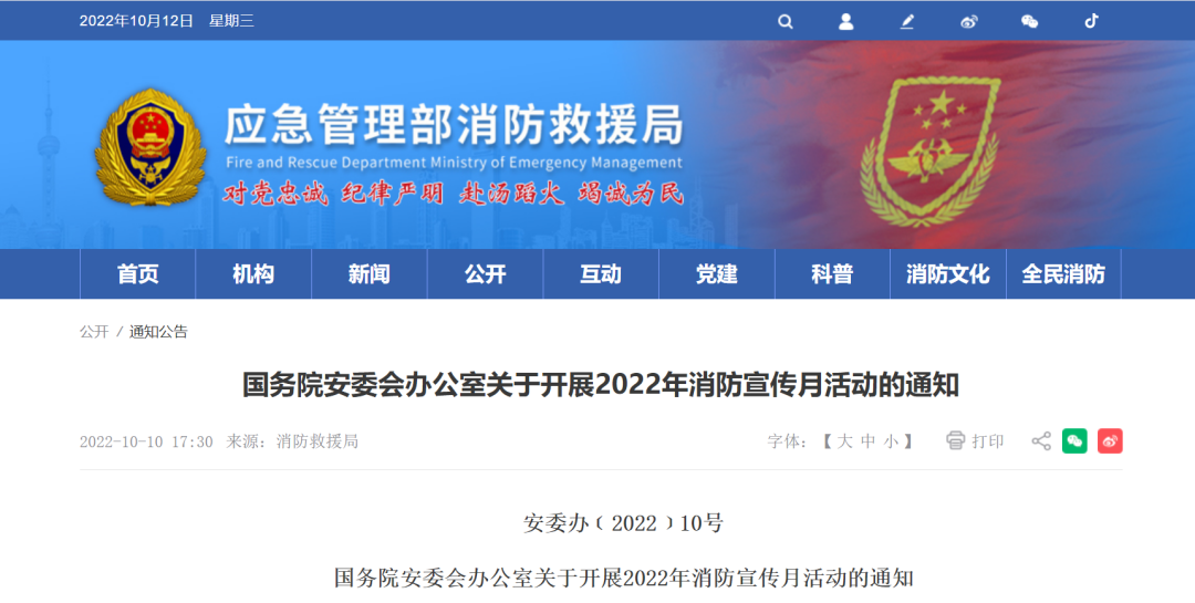 各省、自治區(qū)、直轄市及新疆生產(chǎn)建設兵團安全生產(chǎn)委員會,國務院安委會各成員單位,有關中央企業(yè): 今年11月9日是第31個全國消防日,消防日活動的主題是“...